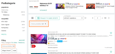 Gdy klikniesz "połącz te same oferty", ocena produktu będzie widoczna na liście: